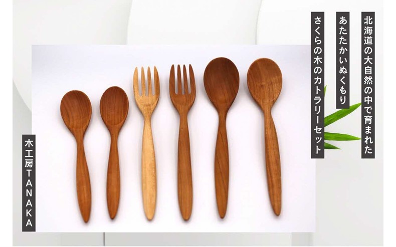 北海道産さくら天然木の手づくりカトラリー6本セット