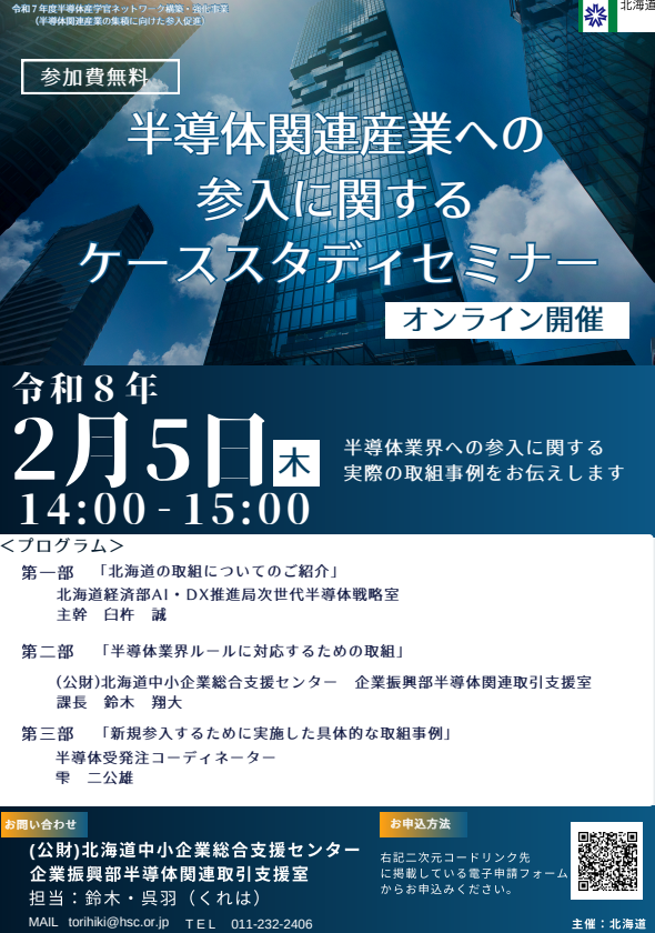 半導体関連産業への参入を検討するにあたり役立つ内容となりますので、是非、ご参加ください。