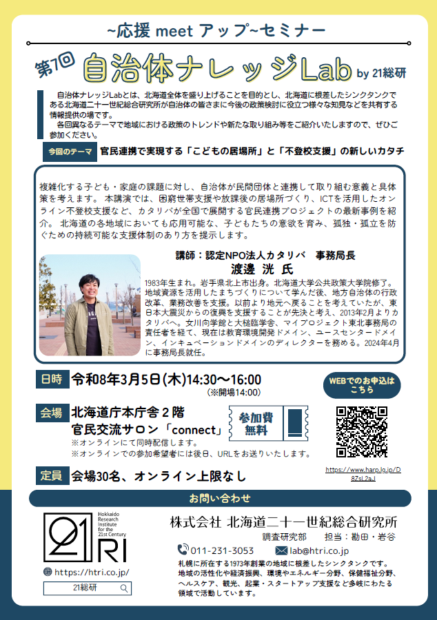 ※ 本セミナーは、「ほっかいどう応援団会議」参加企業である株式会社北海道二十一世紀総合研究所との協働事業です。