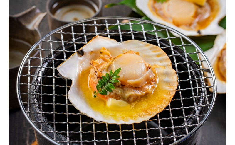 ホタテ殻剥き用ヘラ付き。貝柱を外しウロとエラを除去しミミと貝柱を洗い殻に戻してから、炭火で焼いてバター醤油で堪能ください。11,500円
