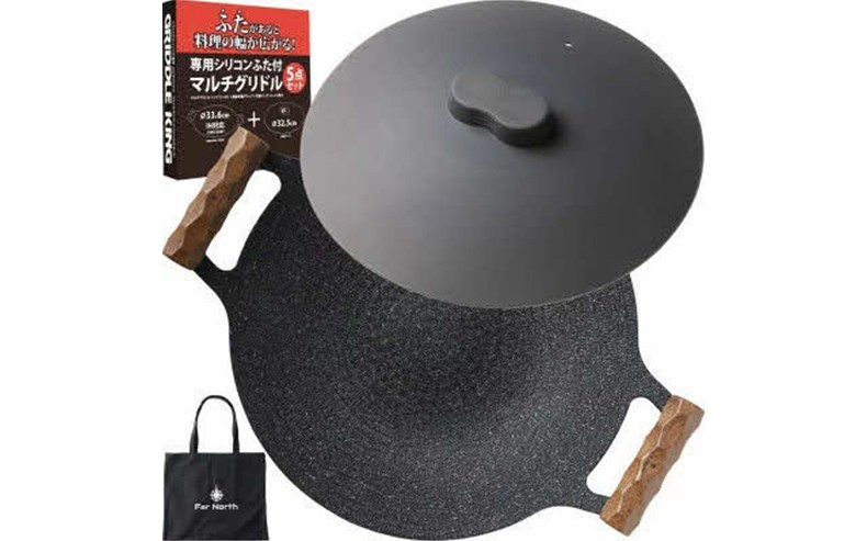 マルチグリドルのために設計・開発したシリコンふたを付属した5点セット。●分厚い底面で温度が下がりにくい