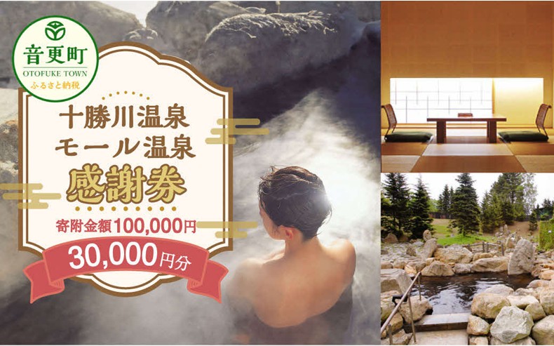 十勝川温泉の対象宿泊施設(7施設)で支払時に使用できる感謝券。その希少価値から「北海道遺産」にも認定されている、美人の湯として人気の十勝川モール温泉を堪能できます。100,000円