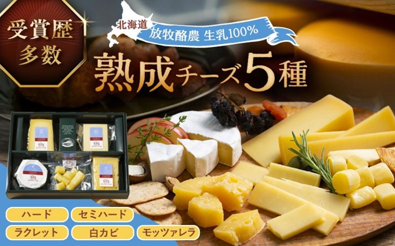 あしょろチーズ工房自慢の熟成チーズ5種を厳選。ハードタイプ、白カビタイプ、ラクレットタイプなど、個性豊かな風味と香りの違いを食べ比べできます。ワインのおつまみに最適です。16,100円