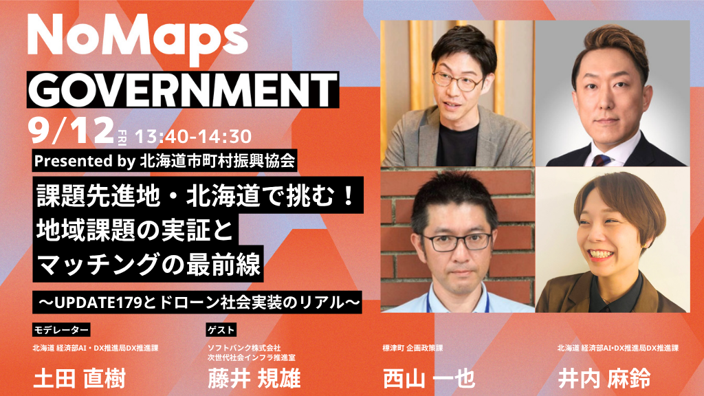 この度、北海道を舞台とした複合型イノベーションイベント『NoMaps2025』において「課題先進地・北海道で挑む!地域課題の実証とマッチングの最前線~ UPDATE179とドローン社会実装のリアル~」と題したトークセッションを開催します。