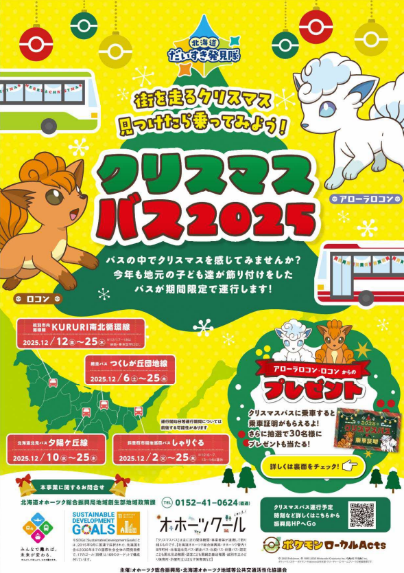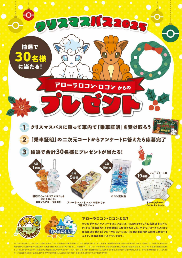 今年は、北海道の推しポケモン「アローラロコン」や「ロコン」がバス車内やバスターミナルの飾りに登場!