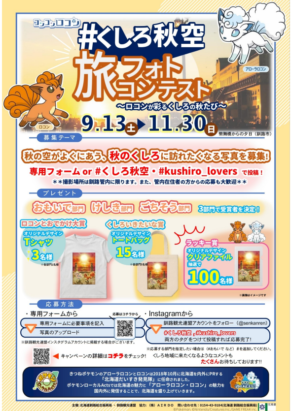 「北海道のローカルアクツ」ロコンとアローラロコンが、くしろ地域の「秋」 を彩ります!