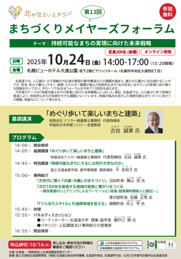 北の住まいるタウン「第13回 まちづくりメイヤーズフォーラム」を開催します