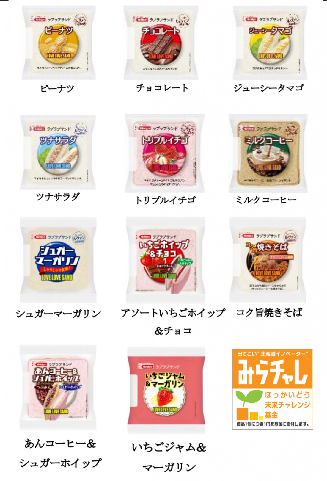 当社は、自社商品「ラブラブサンド」の売上の一部を、北海道が創設した若者の海外挑戦を応援する「ほっかいどう未来チャレンジ基金」へ寄附させていただく取組を実施しています。