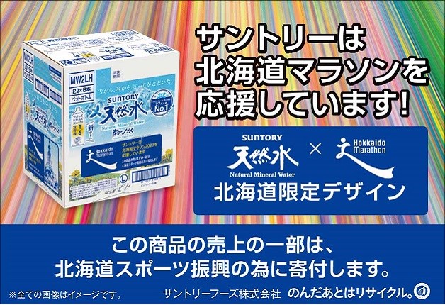 サントリーは、2022年から、北海道マラソンのオフィシャルドリンクパートナーとして大会をサポートしており、大会当日には給水所で「サントリー天然水」を提供しています。