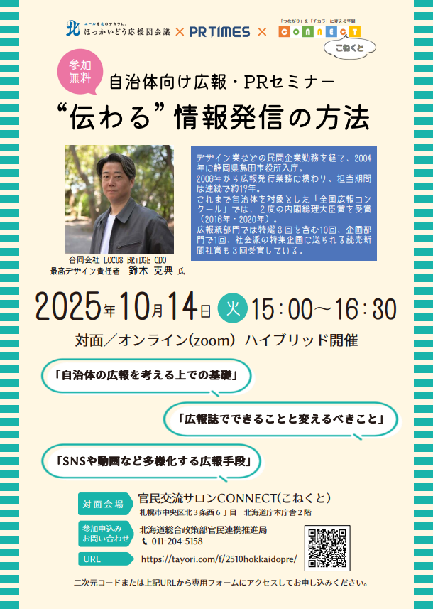※本セミナーは「ほっかいどう応援団会議」参加企業の株式会社PR TIMESとの協働事業です。