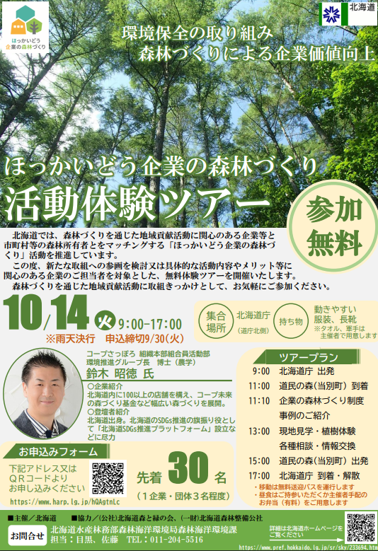 ほっかいどう企業の森林づくり体験ツアーを開催します!
