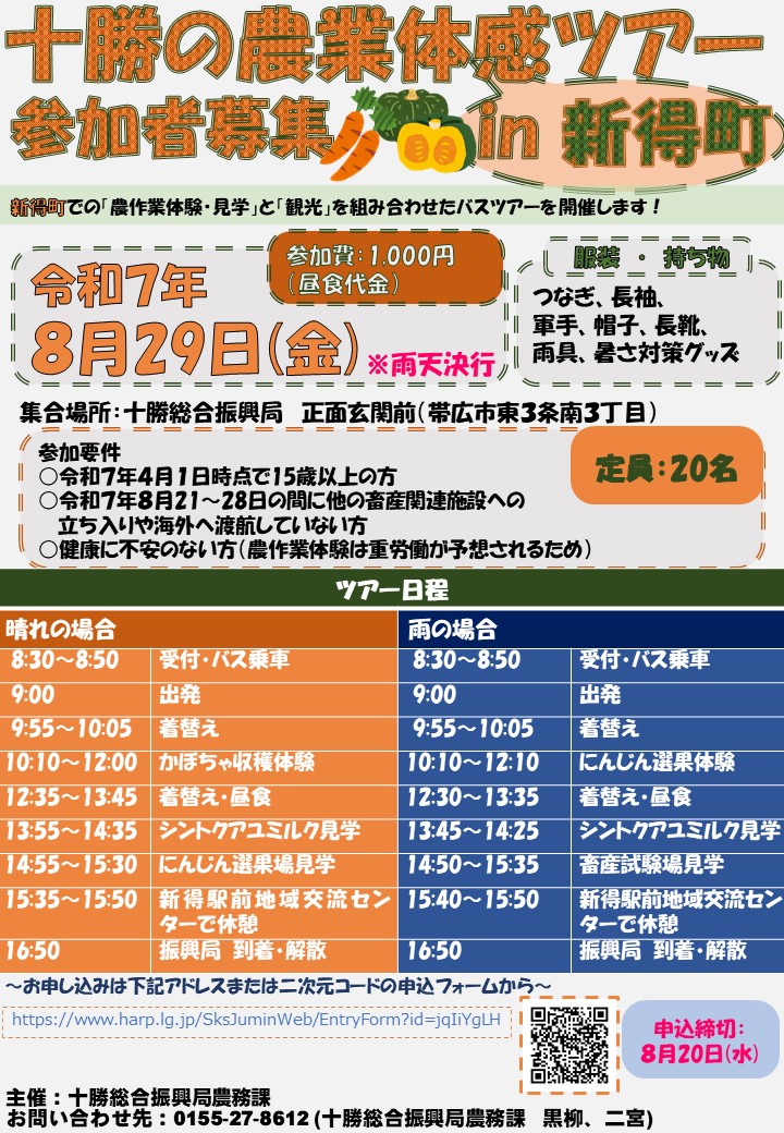 〈北海道〉十勝の農業体感ツアー参加者募集!